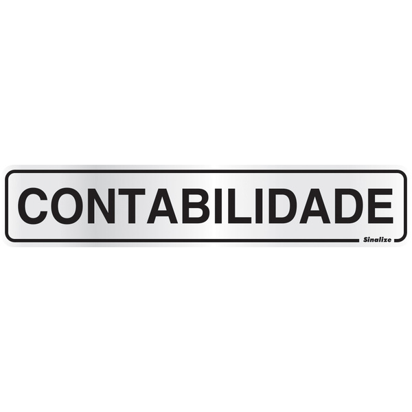 Placa de alumínio contabilidade 5x25cm   as placas sinalize são essenciais para a indicação e sinalização de locais. Com uma aplicação super fácil, as placas podem ser usadas em sua empresa, casa ou em qualquer outro estabelecimento que desejar.   descrição do produto   alumínio 5 x 25cm; alumínio anodizado 0,5 mm de espessura; formato de 5 x 25cm impressão em aluprint, fixação autoadesiva; indicado para locais que não recebam excessiva luz solar; durabilidade de 36 meses uso interno e/ou 12 meses uso externo; aplicabilidade - limpe a superfície onde será aplicada a sinalização utilizando álcool, retire o liner do verso do produto e aplique no local.   conteúdo da embalagem   01 placa de alumínio.