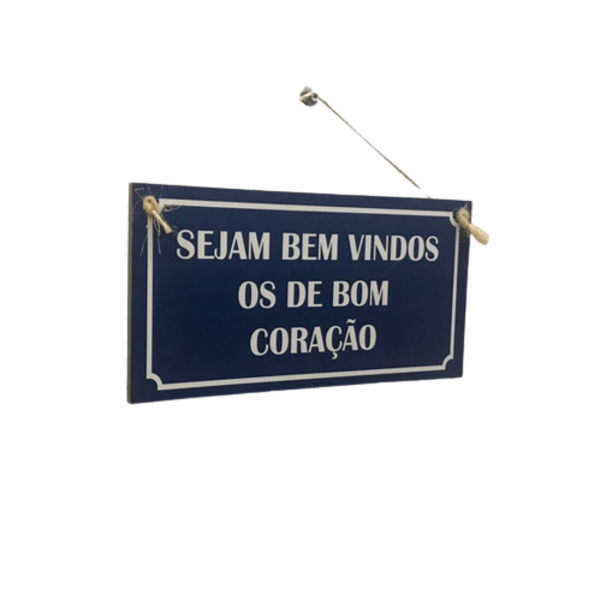 Placa sejam bem vindos os de bom coraçãolinda e charmosa esta plaquinha decorativa.produzida em mdf de 9 mm de espessura, com fundo azul marinho e escrita branca, tem detalhe em cordinha pra pendurar que a deixa mais charmosa.medidas: 15x29cmpendurada: largura 29cm x altura (...