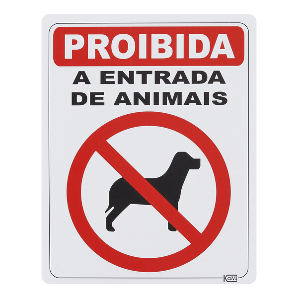 Placa "Proibido Animais" Plástico 23x18cm