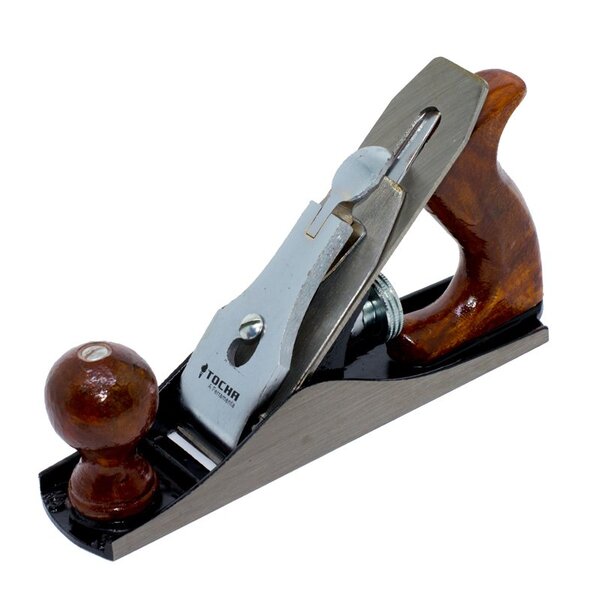 Plaina tocha com dispositivo especial para a geometria do parafuso, possui lâmina ajustável de aço temperado com alto poder de corte, alças de madeira tratada, tampa em aço pra acoplamento preciso e base lisa usinada nas laterais. usado para tratamento de superfície de produ...