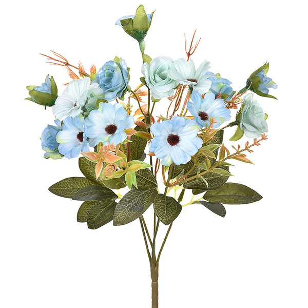 Planta Artificial Ramo de Rosa e Margarida 15cm Azul