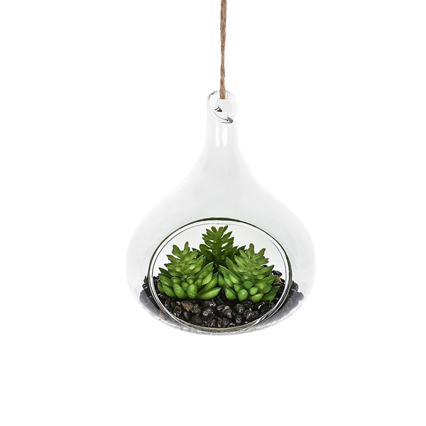 Adicione um toque de beleza e elegância na decoração do seu ambiente com este Terrário Flutuante! Ele possui um mini vaso de vidro com suculentas siliconadas, que são réplicas realistas de suculentas reais, oferecendo a aparência verde e saudável das plantas naturais sem a necessidade de cuidados diários.