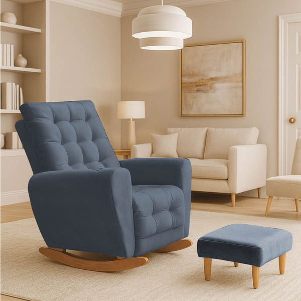 Poltrona amamentação base balanço cecilia a poltrona de balanço são feitas com materiais de alta qualidade, estrutura em madeira de eucalipto, o tecido suede macio e resistente, e a espuma d26 a densidade ideal para o seu conforto, base em madeira com um lindo design e balanço suave, que ajuda a relaxar e a embalar o sono do seu bebê. Além disso, a poltrona possui um design moderno e sofisticado, com detalhes no encosto, que dão um toque de charme e elegância ao ambiente. A poltrona perfeita para esse momento tão especial.
