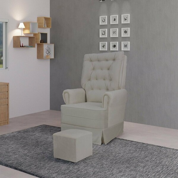Poltrona amamentação com balanço eloa capuccino. Poltrona de balanço amamentação eloa com puff estrutura em madeira eucalipto reflorestada, fixadas com grampos galvanizados; espuma 100% poliuretana: encosto: d-14; assento: d-23; revestido com tecido bouclê; botões encap...