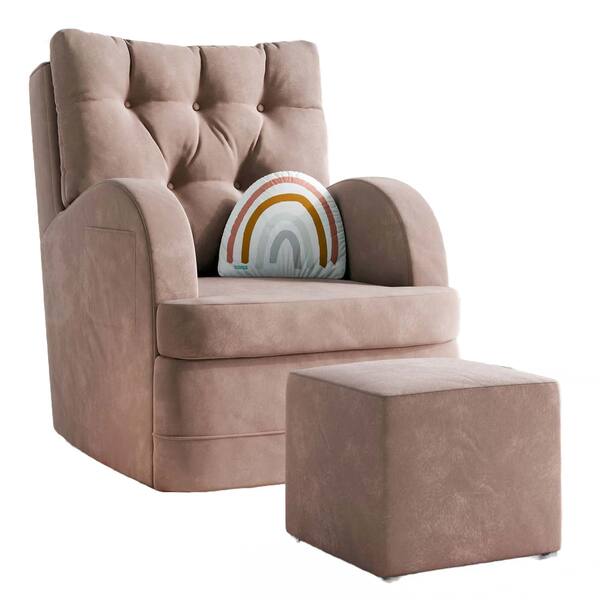 Poltrona Amamentação Ludmila Puff Veludo Rosa