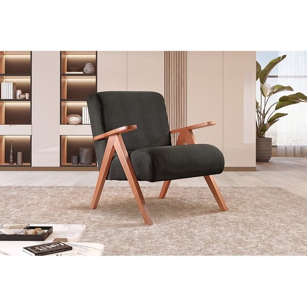 Poltrona braço de madeira laguna preto. A poltrona laguna é uma verdadeira obra de arte, com seus braços em madeira sendo o destaque principal. Eles não só adicionam charme, mas também conferem à peça um papel central. A estrutura é feita de madeira seca e tratada, garantindo...