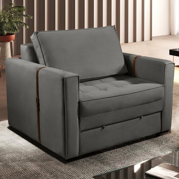 Poltrona cama atalaia cinza grafite. Esta poltrona cama retrátil acomoda 1 pessoa sentada ou deitada, pode ser utilizado em 02 posições diferentes, espumas de alto conforto com a densidade d/26 no assento, o encosto de almofada solta com enchimento de fibra de silicone , pés ...