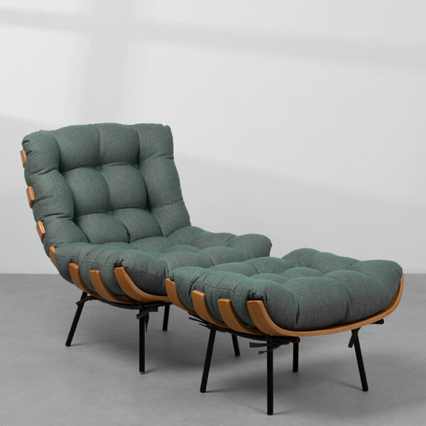Apoltrona costela é a queridinha e o sonho de todos nós! Além de ter uma qualidade excelente com estrutura em aço e em madeira maciça de eucalipto seu visual clássico e elegante traz muita personalidade e estilo para a decoração. Essa poltrona garante conforto após um dia cansativo de trabalho com almofadas que te abraçam e proporciona tranquilidade para os momentos de leitura. para as pessoas mais altas observe se as medidas da poltrona atende todos os seus requisitos de comodidade. apoltrona costela foi criada nos anos 50 peça consagrada por seu desenho e usada pelos melhores arquitetos e designers de interiores para diferentes tipos de ambiente. O criador desta poltrona moderna foi o designer martin eisler nascido em viena na áustria. Formado em arquitetura em 1936 mudou-se após este ano para a argentina e passou a exercer a profissão de arquiteto e design de interiores tendo ainda participado da construção de cenários em apresentações teatrais em buenos aires. opuff costela complementa o visual da decoração do ambiente e expande o conforto da poltrona costela. Serve como apoio aos pés ou assento para as visitas agrega valor de uma forma original ao espaço. o conjunto contém: •1 poltrona costela; •1 puff costela. características principais - poltrona costela: •base fixa; •cor: verde; •revestimento: linho; •pintura epóxi(garante durabilidade); •pintura verniz poliuretano na madeira(garante brilho e qualidade); •acabamento com verniz poliuretano; •almofada com enchimento de fibra siliconizada (para mais conforto); •estrutura em madeira tauari base em ferro com pintura eletrostática; •estrutura em aço carbono tubular 3/4“com parede de 1 5mm solda mig; •madeira multilaminada de eucalipto com a lâmina externa de curupixá; •sapatas de plástico internas(para não riscar o piso); •peso suportado: até 120kg características principais - puff costela: •base fixa; •cor: verde; •revestimento: linho; •pintura epóxi(garante durabilidade); •pintura verniz poliuretano na madeira(garante brilho e qualidade); •almofada com enchimento de fibra siliconizada (para mais conforto); •estrutura em aço carbono tubular 3/4“com parede de 1 5mm solda mig; •madeira multilaminada de eucalipto com a lâmina externa de curupixá; •sapatas de plástico interna(para não riscar o piso); •peso suportado: até 100kg materiais •pintura epóxi: possui alta resistência/durabilidade (à umidade e a produtos químicos) e ótima aderência aos mais diversos tipos de superfícies. É impermeável fácil de limpar com água e sabão neutro e retém o brilho durante um longo tempo. •madeira multilaminada: resistência média à abrasão. Neste tipo de acabamento é aplicado resina melamínica ao papel decorativo que é prensado em alta temperatura e pressão fazendo com que os dois materiais se fundam ao painel de madeira. •verniz pu: é um acabamento e proteção para superfícies de madeira. Evita que fiquem desgastadas ou sofram outros danos. •fibra siliconizada: proporcionam maior conforto e maciez devido a facilidade para enchimento de produtos com contornos de diferentes formatos além disso tem baixo peso e maior volume facilitando o manuseio do produto e possui alto poder de resiliência pelo fato das fibras serem virgens. •aço carbono: confere maior resistência e durabilidade proporciona um visual moderno arrojado e sofisticado para a peça. Os móveis de aço carbono também apresentam a vantagem de terem uma vida útil mais longa pois sua matéria-prima é mais resistente. •pintura verniz poliuretano: é um acabamento e proteção para superfícies de madeira. Evita que fiquem desgastadas ou sofram outros danos. dicas de limpeza e conservação: as poltronas e puffs costela não possuem zíper para separar as capas das espumas internas. Por isso não é possível fazer a sua lavagem separadamente. Sugerimos a impermeabilização da poltrona (disponível em nossas lojas físicas) e indicamos que utilize um pano seco ou úmido para limpeza. para a estrutura em aço e madeira sugerimos utilizar somente pano seco para retirar a poeira. aqui na abra sabemos que os pets também amam conforto como nós! Para conservar o produto da melhor forma indicamos aos papais e mamães de gatos e cachorros o uso de aspirador para retirar os pelos.