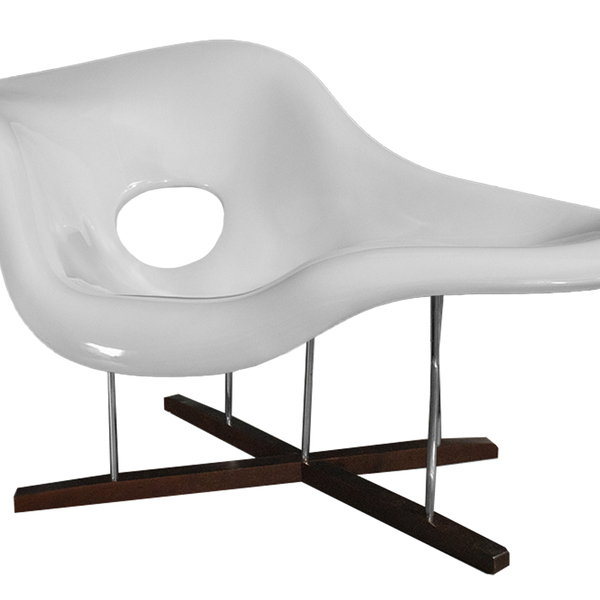La chaise nasceu em 1948. Charles e ray eames inspirados na escultura de gaston lachaise "nu reclinado" 1927 criaram o que se tornaria uma das peças da coleção premiada de arquitetura e design do museu de arte moderna de nova york.   medidas altura - 90cm altura...