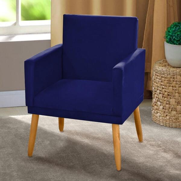 Garantia do produto- garantia de 3 meses para eventuais defeitos de fabricação medida da poltrona- comprimento 0,60cm- altura total 0,85cm- altura do chão até o assento 0,45cm- largura 0,60cm estruturas- estrutura em madeira reflorestada de eucalipto.- acabamento em tecido suede. Assento- espumas d23.- percinta elástica. Encosto- percinta elástica. Pés- 4 pés de madeira pinus de 30cm envernizados, desmontável