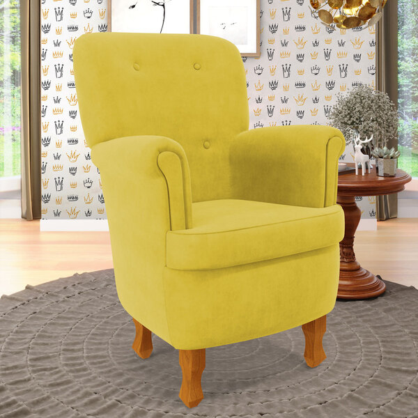 características do produto: madeira de eucalipto proveniente de reflorestamento fixação com grampos galvanizados espuma poliuretano d20 produto costurado revestimento: sued cor: amarelo tamanho: único possui pés: sim tipo de pés: pés de madeira de 18 cm possui 4 pés poltrona suporta até 90 kg embalagem: plástico bolha, papelão ondulado, malha, plástico garantia de 3 meses contra defeitos de fábrica.