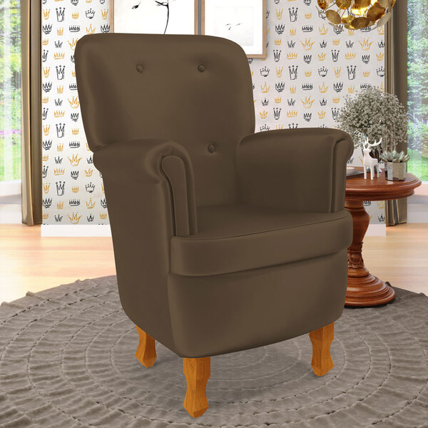características do produto: madeira de eucalipto proveniente de reflorestamento fixação com grampos galvanizados espuma poliuretano d20 produto costurado revestimento: veludo cor: capuccino tamanho: único possui pés: sim tipo de pés: pés de madeira de 18 cm possui 4 pés poltrona suporta até 90 kg embalagem: plástico bolha, papelão ondulado, malha, plástico garantia de 3 meses contra defeitos de fábrica.
