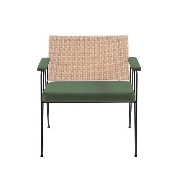A poltrona vime é fabricada em aço carbono encosto em palhinha e assento revestido com espuma d28 e tecido agregando muito conforto. Sofisticada o item é excelente para compor sua decoração.   características:   - cor: verde - acabamento: tecido - material: aço...