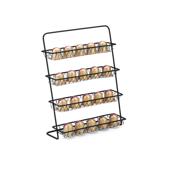 Porta cápsula universal preto fosco  organize suas cápsulas com praticidade e estilo o porta cápsula universal black da arthi é a solução ideal para manter sua cozinha mais organizada e funcional. Com design moderno e elegante este porta cápsula é compatível com diversas marcas garantindo versatilidade no armazenamento.   diferenciais: design: seu formato vertical e o acabamento em preto trazem sofisticação ao ambiente. compatibilidade: este suporte é universal podendo ser utilizado com cápsulas de diversas marcas. praticidade: com 4 divisórias você pode separar e organizar suas cápsulas de forma eficiente.   mais sobre o produto: organização: mantenha suas cápsulas de café sempre à mão e de forma organizada. decoração: além de funcional o porta cápsula é um item decorativo para sua cozinha. praticidade no uso diário: tenha suas cápsulas facilmente acessíveis na hora de preparar sua bebida favorita.   dicas de uso: coloque as cápsulas nas divisórias de forma que os diferentes sabores fiquem separados. limpe o porta cápsulas regularmente com pano úmido para mantê-lo sempre em bom estado.   ficha técnica: material: metal dimensões: c 22cm x l 11 3cm x a 28 5cm cor: preto marca: arthi compatibilidade: universal