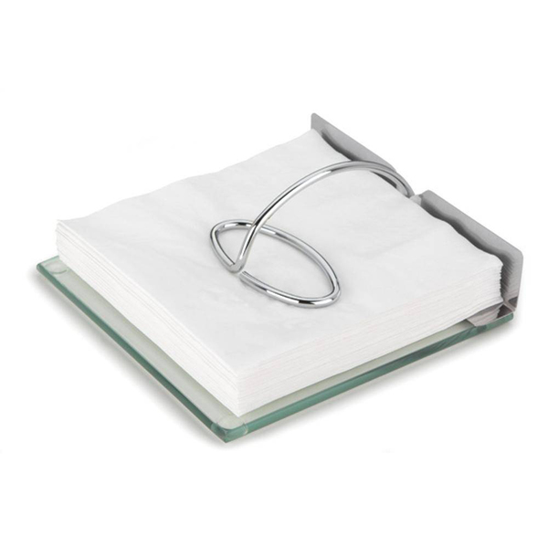 Porta Guardanapos Slim Forma   18x18x4,5 cm   Aço Inox / Aço Cromado / Vidro Incolor