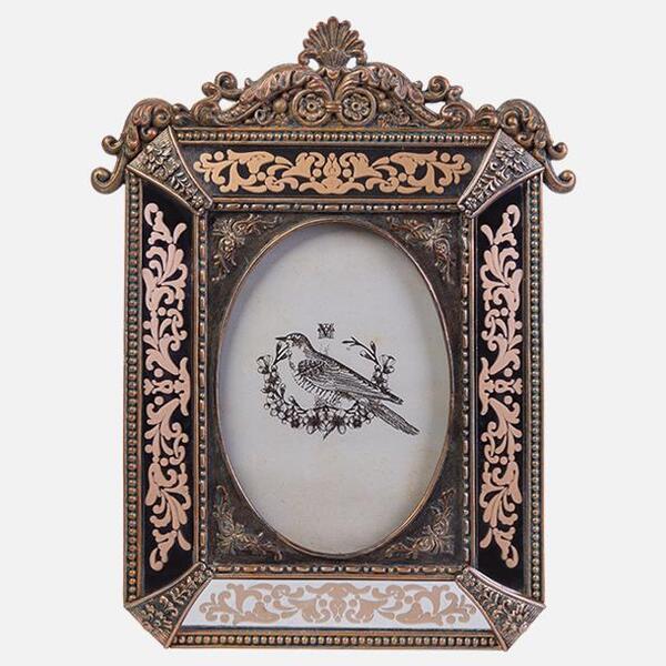 Porta-retrato em resina na cor dourada no estilo vintage com aplicação de espelho.cor: dourado material: resina