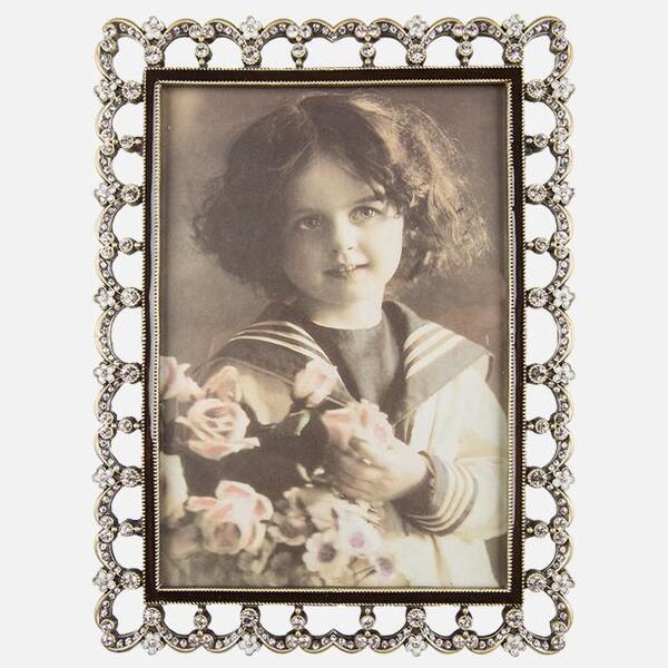 Porta-retrato em metal na cor dourada com aplicação de pedrarias.cor: dourado material: metal