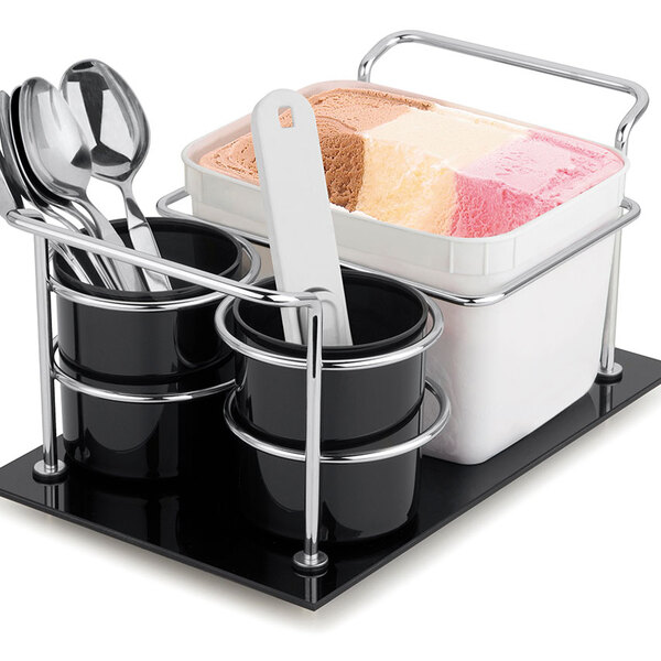 O suporte para pote de sorvete na cor preta com porta colheres é um acessório de cozinha projetado para ajudar a manter o sorvete fresco e delicioso enquanto é servido. É feito de material resistente e durável com acabamento em preto que se adapta facilmente a qualquer decor...
