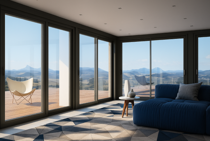 A linha minimalista permite uma visão clean do produto com o mínimo de alumínio aparente, proporcionando beleza e leveza ao projeto. Tem apenas 38mm de alumínio de vista frontal, marcos embutidos e sistema de captação e drenagem de água. Pode atender grandes vãos tanto em altura como largura.