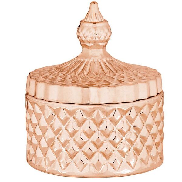 O pote rose tem excelente acabamento é fabricado em vidro e pode ser usado em vários ambientes dando requinte e charme para sua decoração. material: vidrocor: rosemedidasaltura: 10 cmlargura: 8 5 cmprofundidade: 8 5 cmpeso: 0 33 kgobs.: o lote atual do produto refere-se a cor mais puxada ao dourado conforme ilustrada nas imagens complementares de não estúdio.