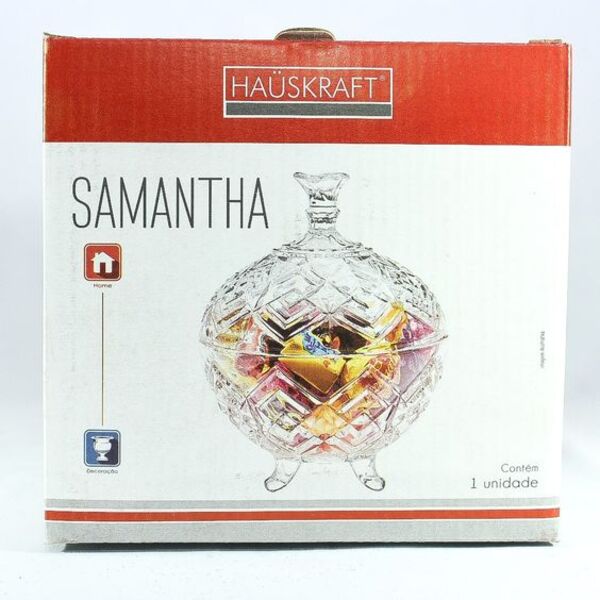 Potiche decorativo samantha 800ml hauskraft linda e elegante potiche da hauskraft, é produzida em cristal de ótima qualidade, alta transparência e durabilidade. É trabalhada com desenhos em alto relevo, dando um toque de beleza e sofisticação. Uma peça que pode decorar sua c...