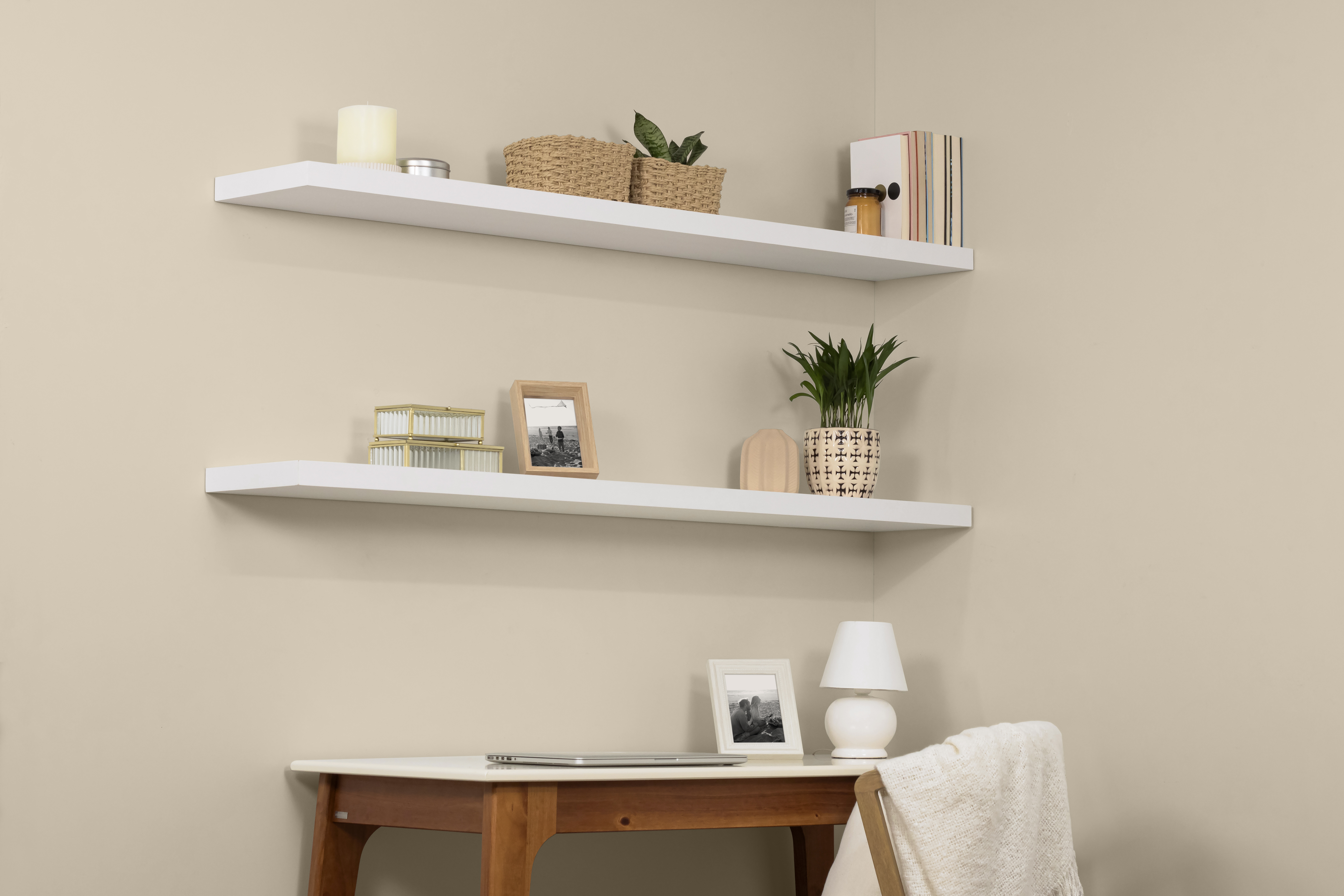 Prateleira de Madeira MDP Branca 150x25cm com Suporte Invisível Spaceo
