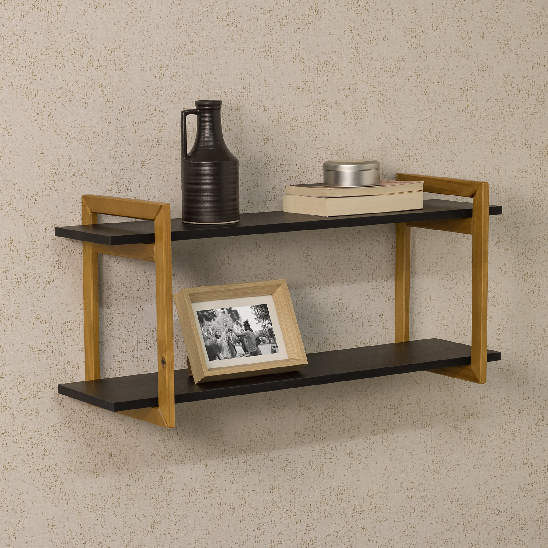Prateleira Industrial de Madeira MDF Preta 80x25x35cm com Suporte Visível Astro Astral Design