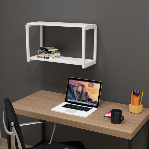 Prateleira Industrial Dupla de Madeira MDP Branca 60x24x24,5cm com Suporte Visível Brasforma