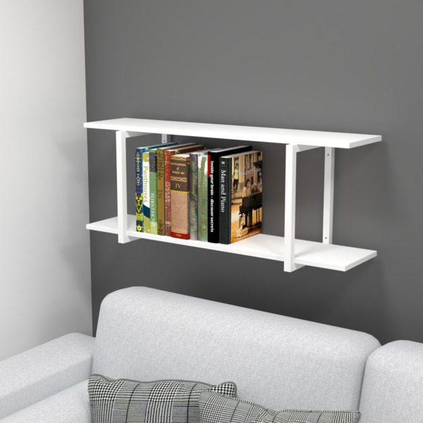 Prateleira Industrial Dupla de Madeira MDP Branca 90x24x35cm com Suporte Visível Brasforma