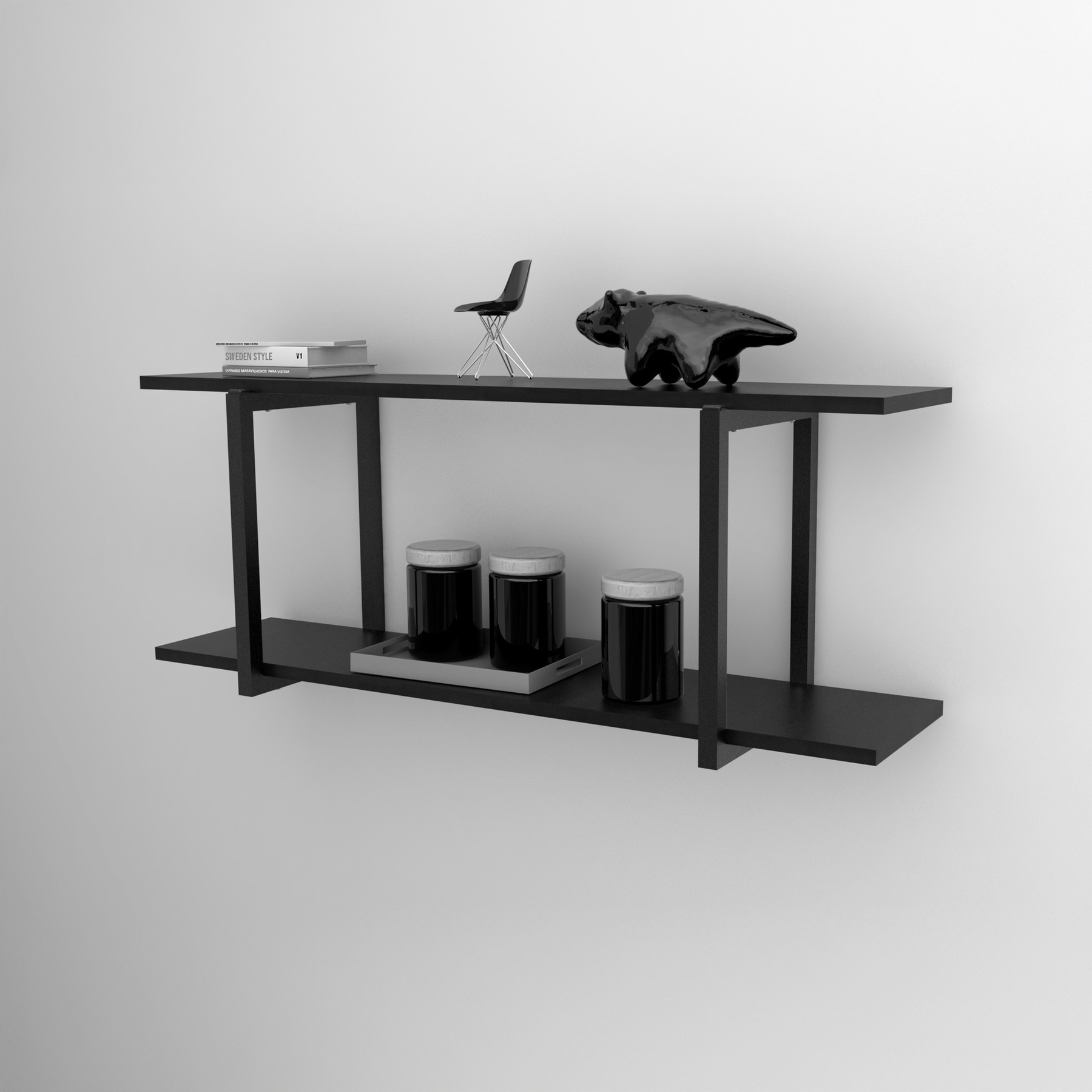 Prateleira Industrial Dupla de Madeira MDP Preta 90x24x35cm com Suporte Visível Brasforma