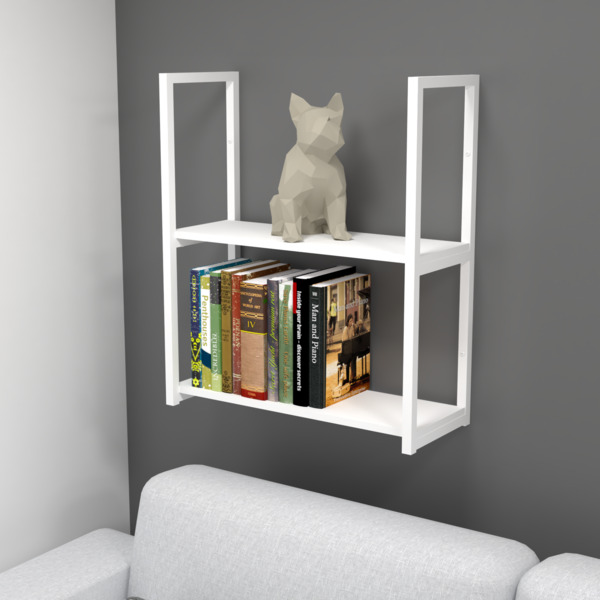 Prateleira Industrial Dupla de Madeira Pinus Branca 60x24x70cm com Suporte Visível Brasforma