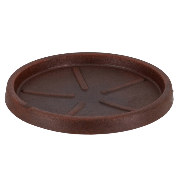 Ideal para suportar vasos de plantas ou peças decorativas no geral, este prato é feito de plástico na tonalidade marrom, conta com dimensões de 3 cm de altura e 32 cm de diâmetro no formato redondo e é indicado para vasos médios.