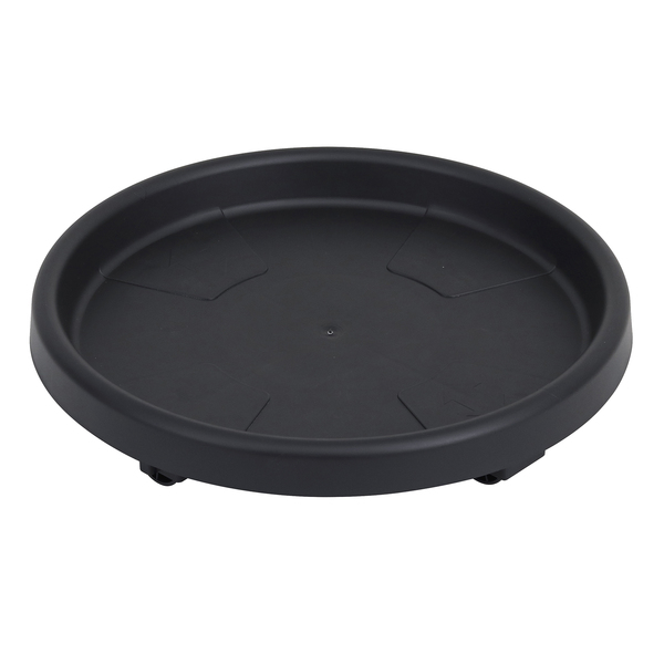 Prato para Vaso 35x35cm Redondo em Plástico Preto com Rodas Skate Okla