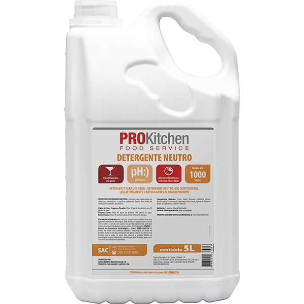 Detergente de alto desempenho, para limpeza de utensílios de cozinhas e superfícies em geral. Com pH neutro, possui alto poder de remoção de sujidades gordurosas animais e vegetais, amidos e proteínas.
