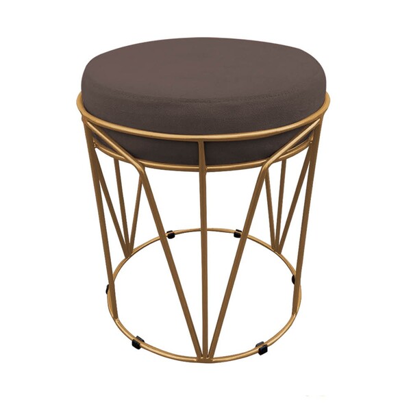 Puff Babu Suede Base Dourado - Marrom