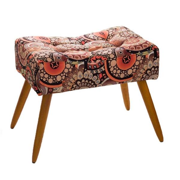 Puff Banqueta Retangular Suede Estampado Mosaico