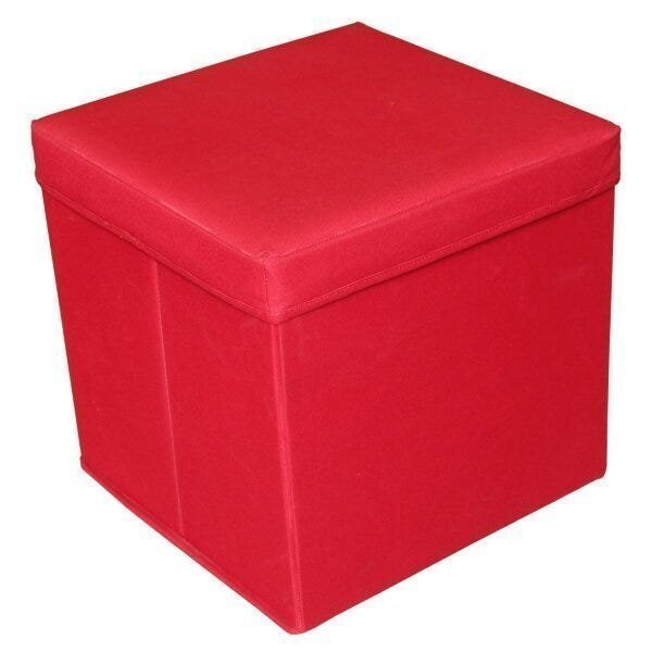 Puff baú . Puff baú com estrutura em mdf, revestimento em lona, tampa com espuma, suporta até 100kg, desmontável. Versatilidade, conforto, design. Ideal para guardar os brinquedos de crianças e ainda utilizar como banco. Peso (kg): 2.5 garantia: 03 meses altura (cm): 35 largura (cm): 35 possui baú: sim possui pés: não suporta até (kg): 100 profundidade (cm): 35 escala de brilho: fosco ambiente principal: sala de estar material da estrutura: mdf fabricante: acasa móveis marca: acasa móveis tonalidade: vermelho cor: vermelho itens inclusos: 1 puff baú cor predominante: vermelho revestimento do produto: lona