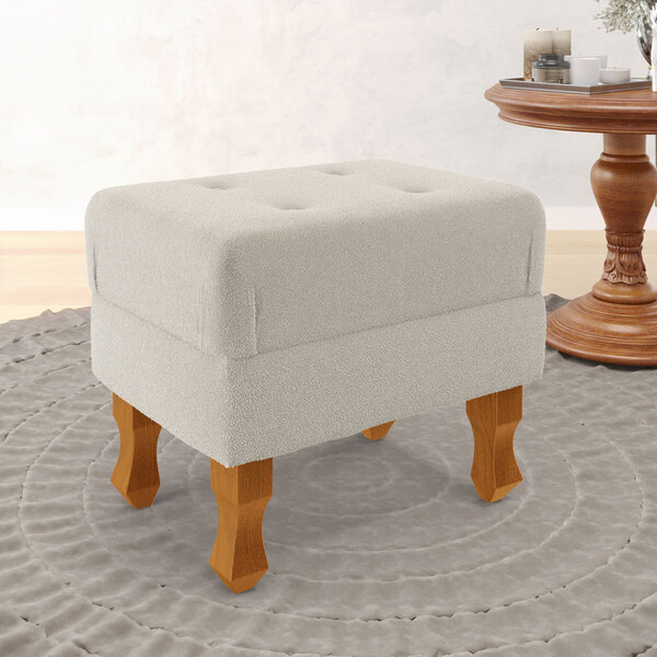 características do produto: madeira de eucalipto proveniente de reflorestamento fixação com grampos galvanizados espuma poliuretano d20 produto costurado revestimento: bouclê cor: bege tamanho: único possui pés: sim tipo de pés: pés de madeira possui 4 pés de 18 cm embalagem: plástico bolha, papelão ondulado, malha, plástico garantia de 3 meses contra defeitos de fábrica.