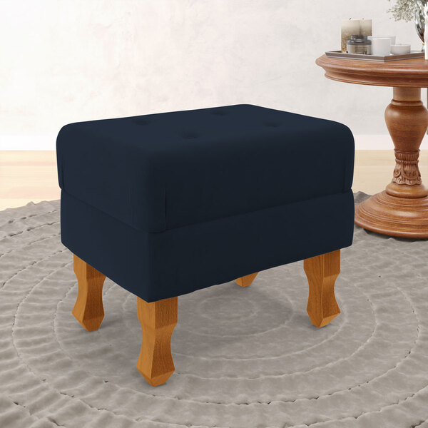 características do produto: madeira de eucalipto proveniente de reflorestamento fixação com grampos galvanizados espuma poliuretano d20 produto costurado revestimento: sued cor: azul marinho tamanho: único possui pés: sim tipo de pés: pés de madeira possui 4 pés de 18 cm embalagem: plástico bolha, papelão ondulado, malha, plástico garantia de 3 meses contra defeitos de fábrica.