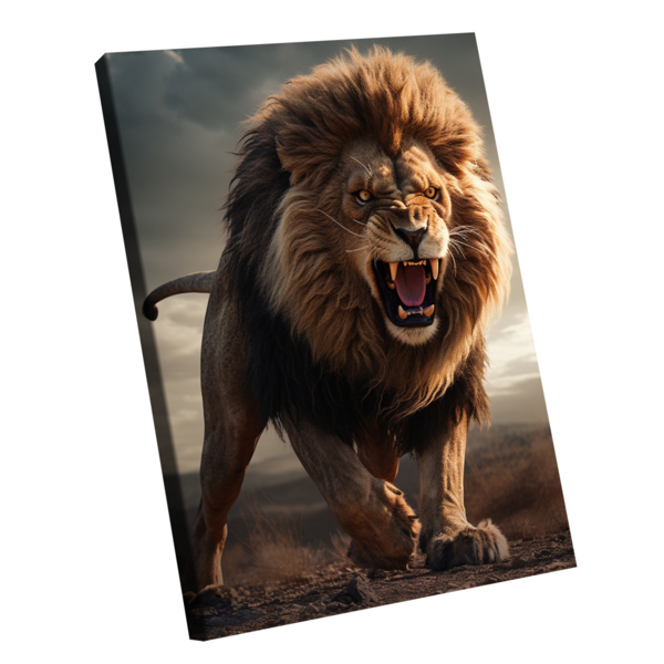 Quadro angry lion -- br artes borda infinita - ultra grande 150x100 - - qualidade premium (padrão museu) - impresso em canvas original com selo(tela de pintura) - alta durabilidade (durabilidade de mais de 30 anos) - alta resolução full hd 4k - 6 vezes mais leve que os...