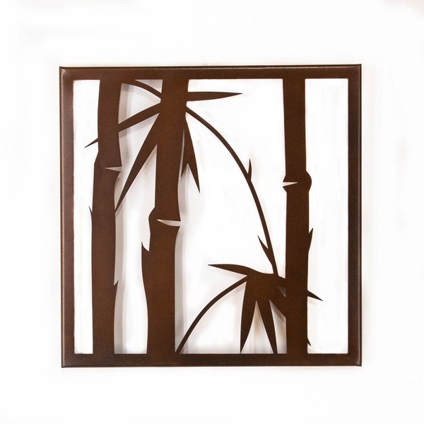 O bambu é símbolo da generosidade e da multiplicação. Para reinventar seu ambiente o quadro bambu é uma opção original e cheia de detalhes para enriquecer ainda mais sua decoração. a cortes cores é especialista em transformar aço em arte desde 2007! Todas as nossas peças são executadas em aço galvanizado com pintura eletrostática o que torna nossos produtos extremamente duradouros podendo ser usado tanto em ambientes internos quanto externos. especificações:  material: aço galvanizado altura: 33cm  largura: 33cm  peso: 570g cores: preto fosco marrom fosco instalação: instalação simples fácil e rápida apenas  parafusar. importante: - podem ocorrer variações na cor do produto conforme o contraste e brilho do monitor luminosidade local ou percepção visual. - imagens ambientadas são meramente ilustrativas os objetos e demais móveis não acompanham o produto.