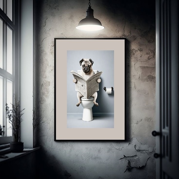 Quadro Banheiro Pug - 60x48cm Moldura Branca