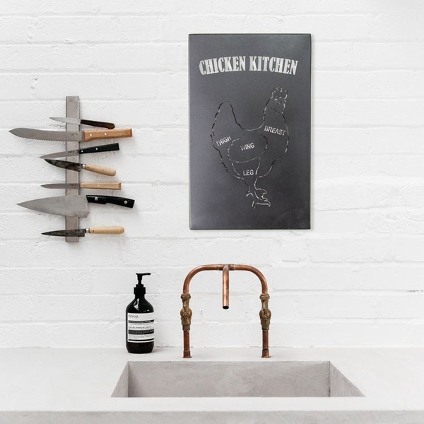 Com um toque retrô o quadro churrasco galinha é ideal para sua cozinha ou área gourmet. Garante aos amantes da boa culinária uma decoração sofisticada e contemporânea ao ambiente escolhido. a cortes cores é especialista em transformar aço em arte! Todas as nossas esculturas são fabricadas em aço galvanizado com pintura eletrostática  o que torna nossos produtos extremamente duradouros. especificações:  material: aço galvanizado altura: 53cm  largura: 43cm  peso: 1400g cores: preto fosco marrom fosco instalação: instalação simples fácil e rápida apenas  parafusar. importante: - podem ocorrer variações na cor do produto conforme o contraste e brilho do monitor luminosidade local ou percepção visual. - imagens ambientadas são meramente ilustrativas os objetos e demais móveis não acompanham o produto.