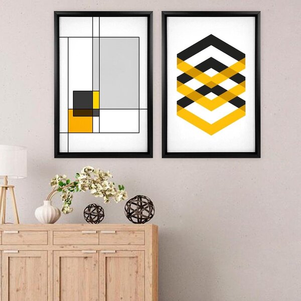 Quadro com moldura chanfrada abstrato amarelo preto - médio - # quadros com moldura transforme seu ambiente com os quadros wevans. Versáteis para decorar a sala, quarto, cozinha, escritório ou onde sua imaginação mandar. Os quadros são cheios de qualidade, estilo e perso...