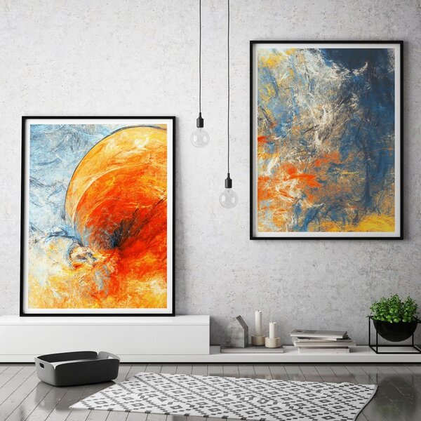 Quadro com moldura chanfrada abstrato laranja pequeno -