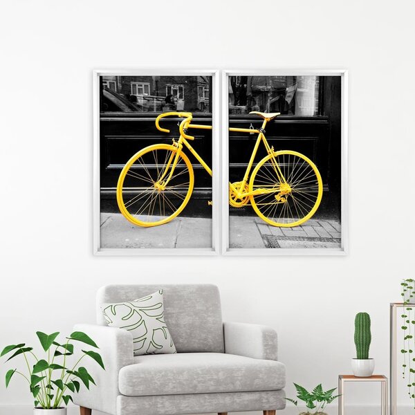 Quadro com moldura chanfrada bicicleta amarela branco - médio -