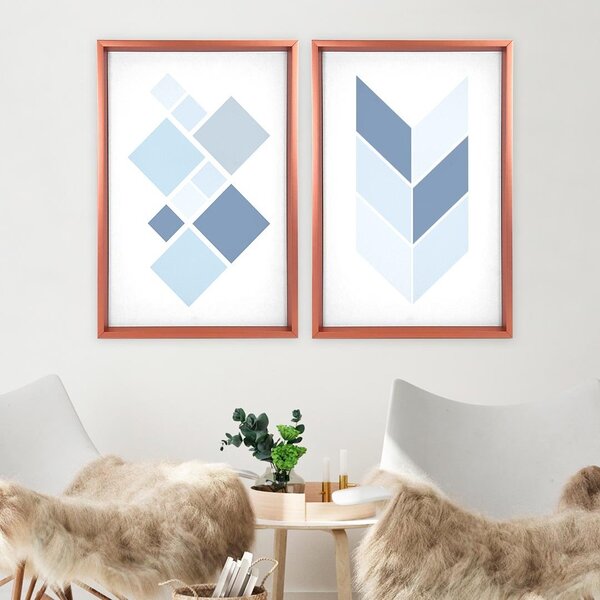 Quadro com moldura chanfrada geométrico azul rose metalizado - médio -