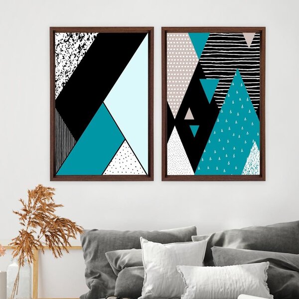 Quadro com moldura chanfrada geométricos azul madeira escura - médio -