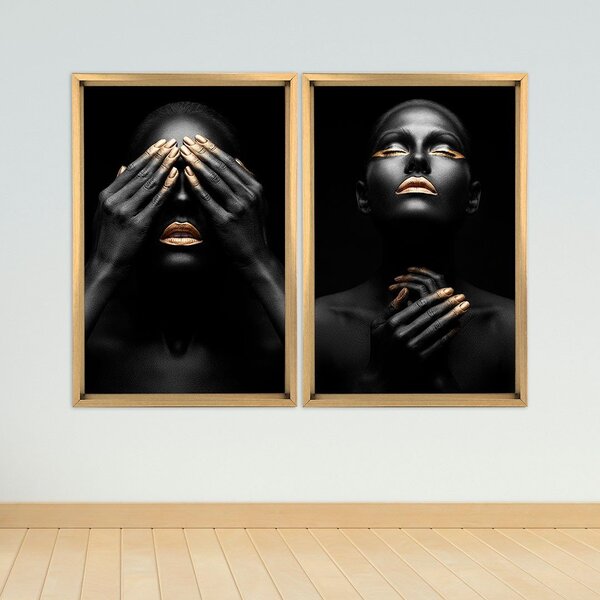 Quadro com moldura chanfrada mulheres ouro madeira clara - grande - # quadros com moldura transforme seu ambiente com os quadros wevans. Versáteis para decorar a sala, quarto, cozinha, escritório ou onde sua imaginação mandar. Os quadros são cheios de qualidade, estilo e...