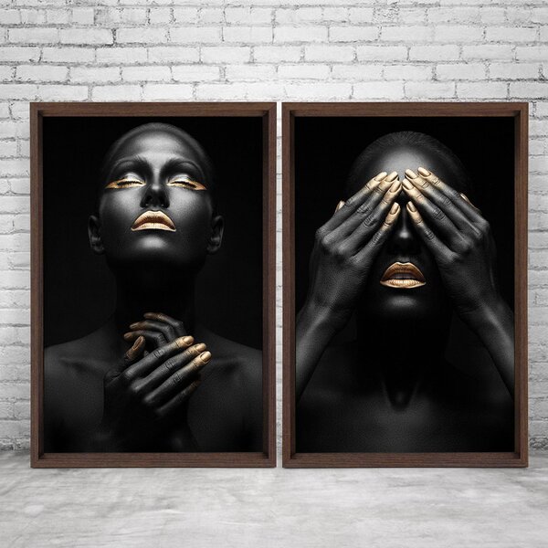 Quadro com moldura chanfrada mulheres ouro madeira escura - médio - # quadros com moldura transforme seu ambiente com os quadros wevans. Versáteis para decorar a sala, quarto, cozinha, escritório ou onde sua imaginação mandar. Os quadros são cheios de qualidade, estilo e...